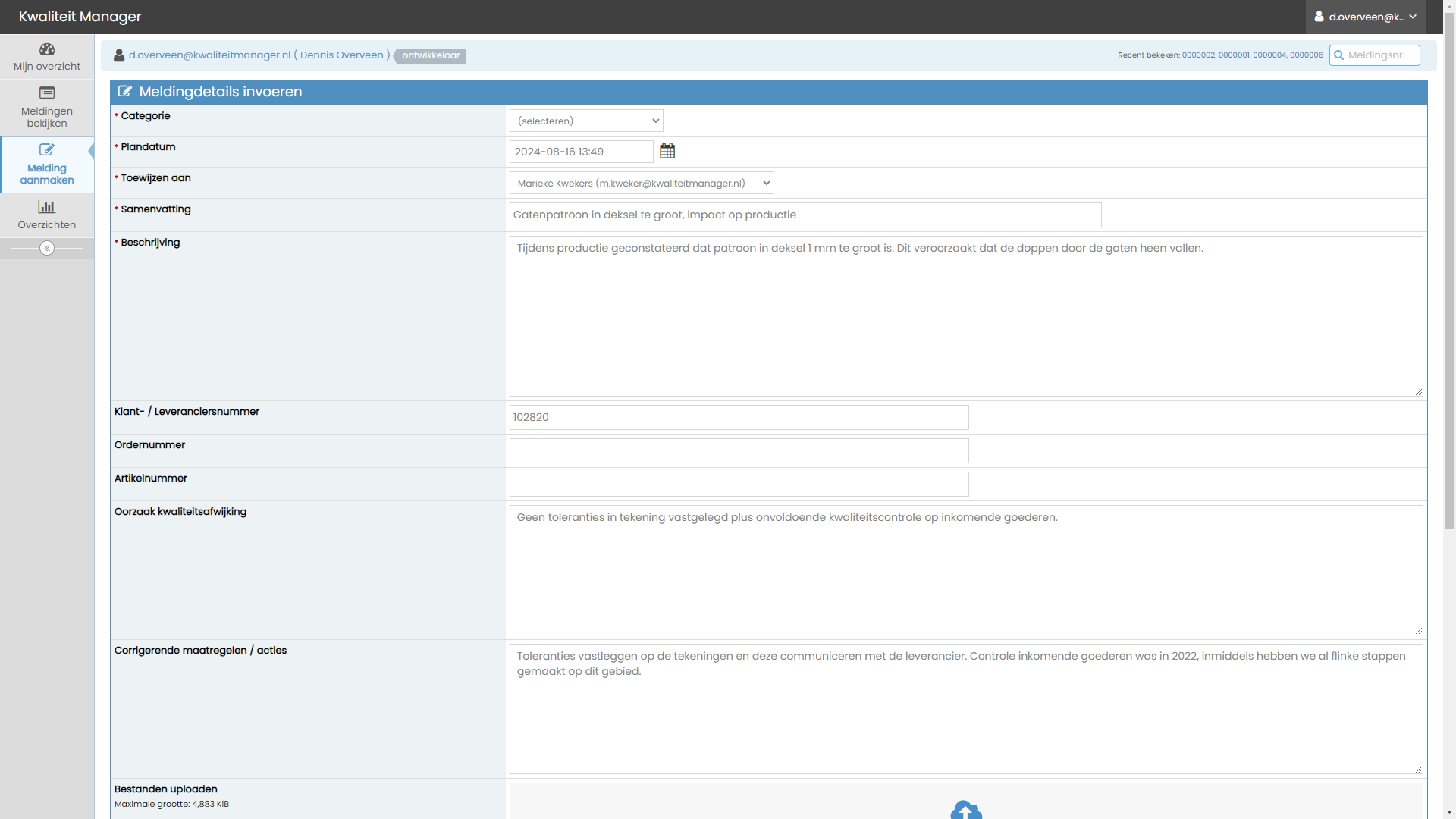 Kies direct een verantwoordelijke voor de melding, zodat deze direct wordt opgepakt. - Bijlagen Uploaden