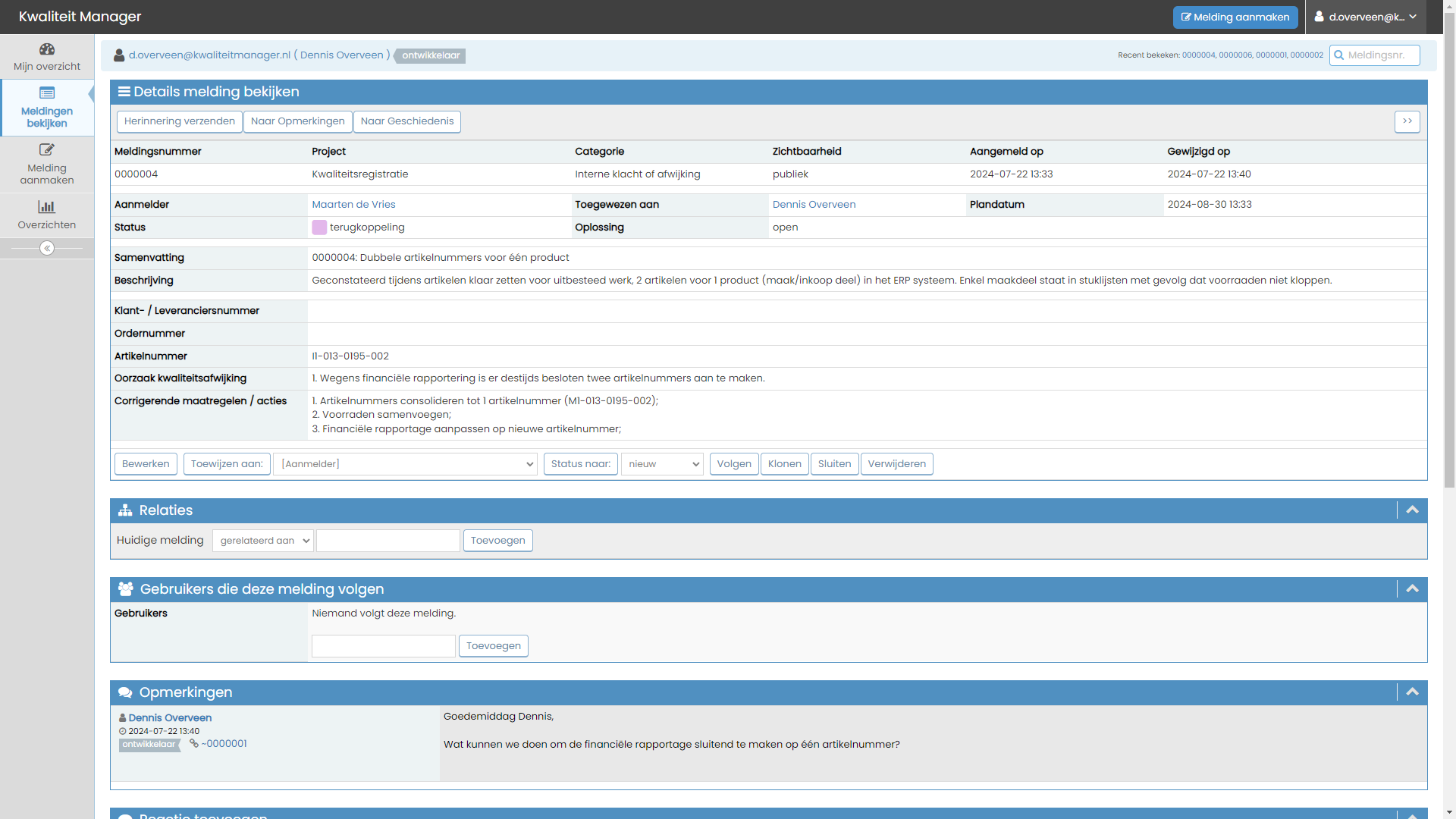 - Nieuwe informatie toevoegen: Voeg extra bijlagen, actiepunten of opmerkingen toe die relevant zijn voor de melding.